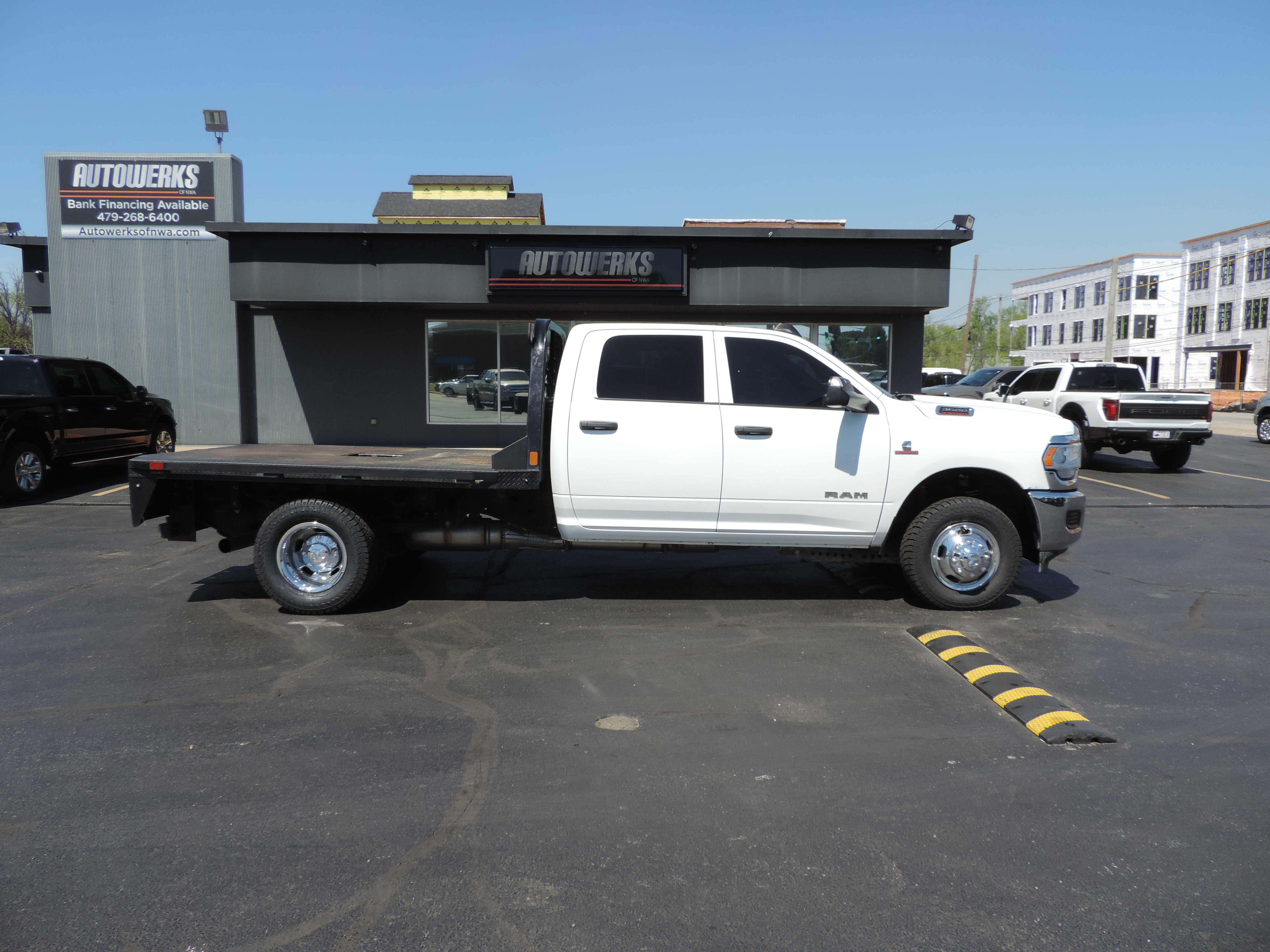 2021 Ram 3500 Crew Cab Flatbed Dually 4x4 Diesel. Cloth Interior, Aisin Transmission, Carpet Delete, Exhaust Brake, Hidden Hitch, Tow Package, New Tires, Tow Mirrors, CM Flatbed, 6.7L Diesel.