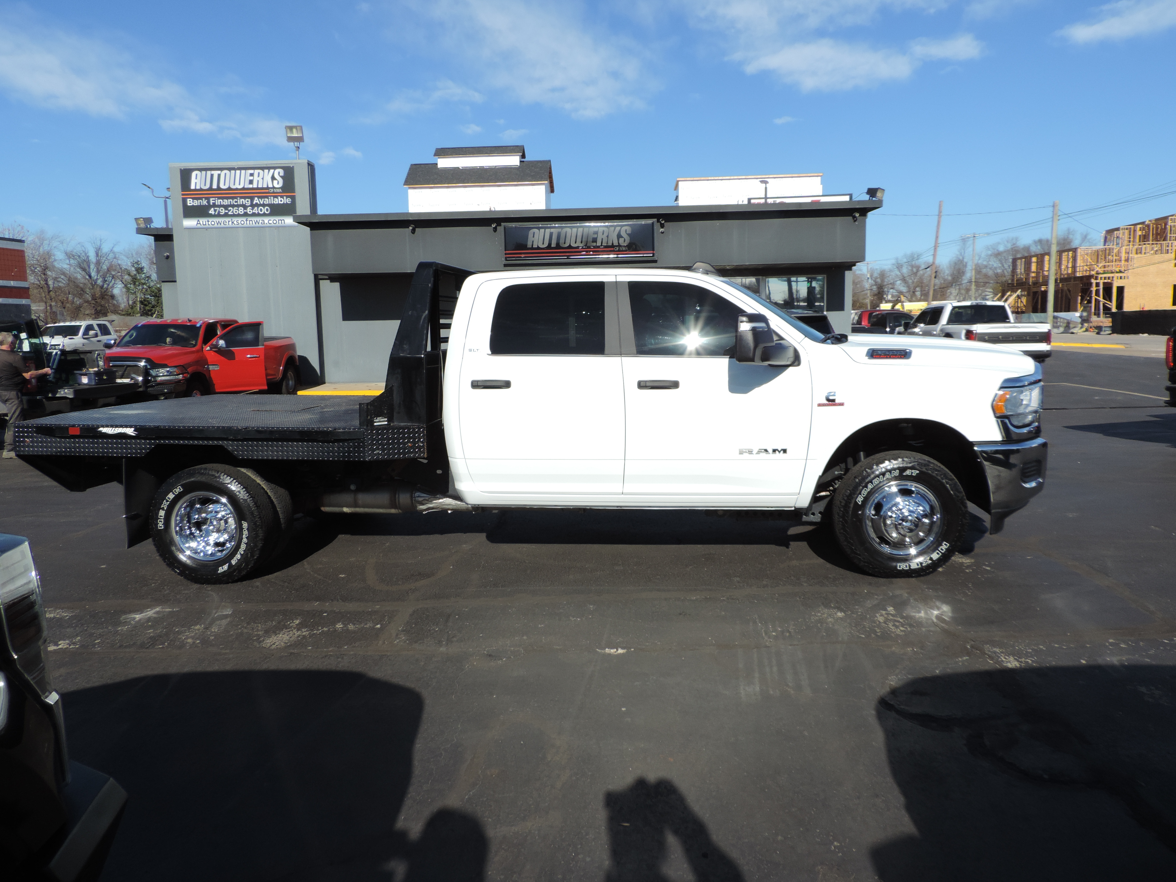 2024 Ram 3500 Crew Cab 4x4 Dually Flatbed Diesel. Cloth Interior, Aisin Automatic Transmission, Power Locks And Windows, Keyless Entry, Tow Package, Blackridge Flatbed, Tow Mirrors, 6.7L Diesel.